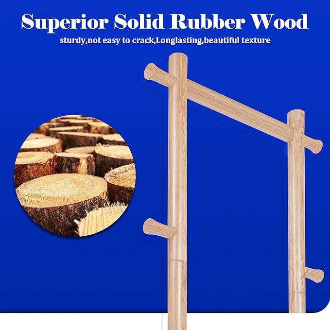 - Stable and Sturdy:Made of high-quality wood,base reinforcement and thickening,this coat rack can withstand daily use and lasts for years