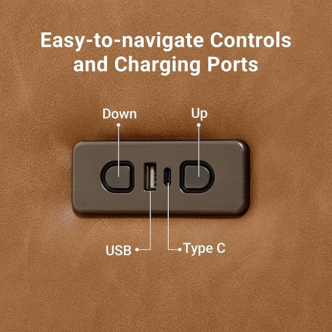 - Smart Control and Convenience: Experience effortless comfort with this power recliner featuring one-touch motorized controls for backrest and footrest adjustment, plus a built-in USB charging port to keep your devices powered without extra cords.