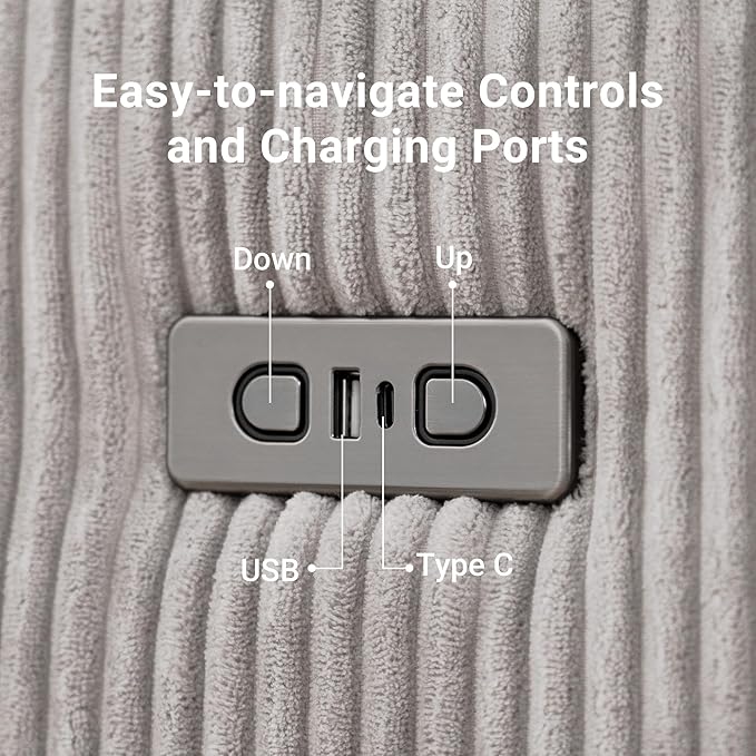 - Smart Control and Convenience: Experience effortless comfort with this power recliner featuring one-touch motorized controls for backrest and footrest adjustment, plus a built-in USB charging port to keep your devices powered without extra cords.