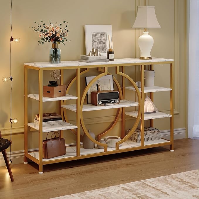 - Ample Storage Space: Featuring 7 open shelves, this console table provides plenty of space for you to display decorative accents, potted plants, and lamps in your bedroom, living room, or home office. Store your small items on the shelves to avoid mess and help keep your room tidy and organized.
