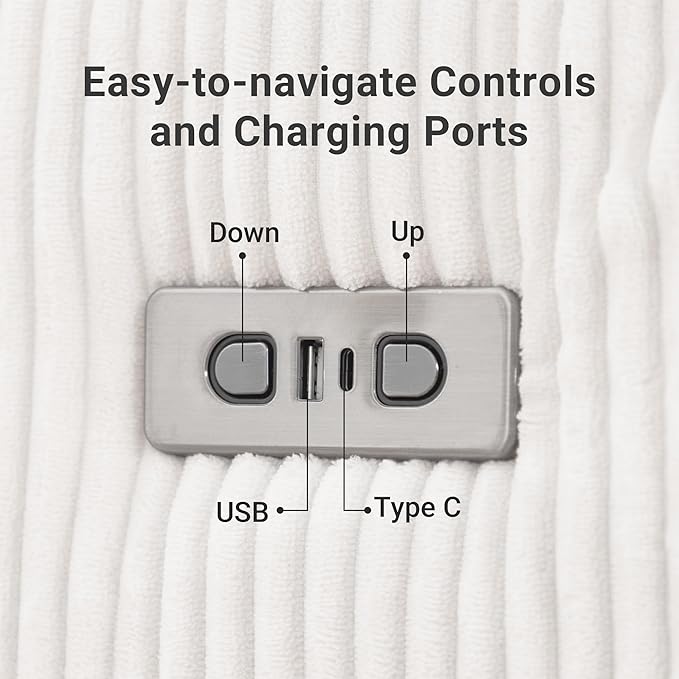 - Smart Control and Convenience: Experience effortless comfort with this power recliner featuring one-touch motorized controls for backrest and footrest adjustment, plus a built-in USB charging port to keep your devices powered without extra cords.