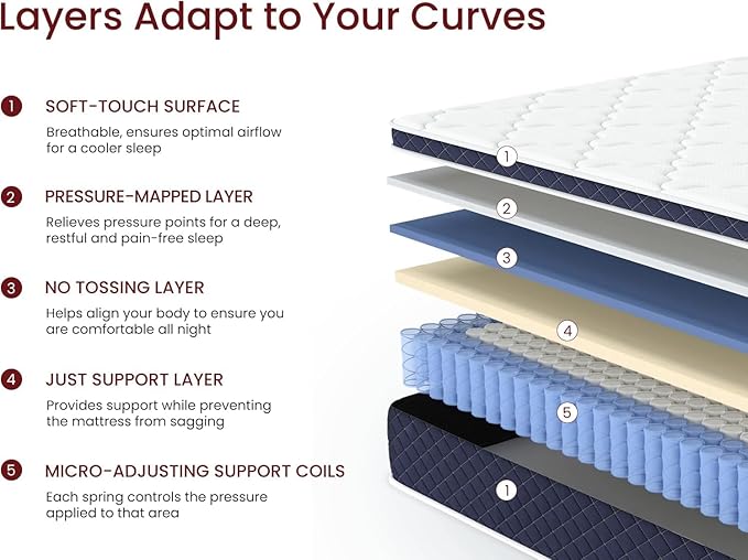 - Long Lasting & Supportive: Shorter coils for stronger support, and a thicker, more contouring comfort layer, Individual encased coils, zoned to give you support where you need it most, these quality coils move independently to give targeted support and relief