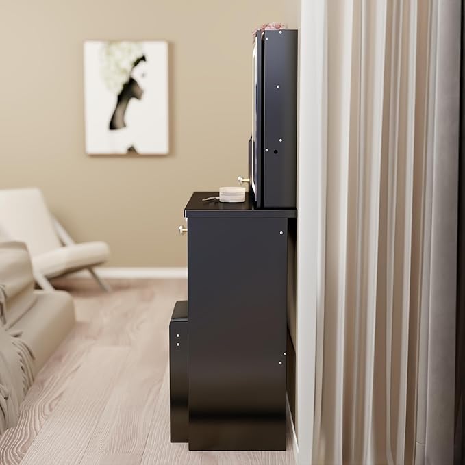 - Perfect for Petite Spaces & Users: This small black vanity measures just 29.2" wide and 50.4" high—ideal for petite women (5'5" and under) and tight spaces like small bedrooms, dorms, or studio apartments.