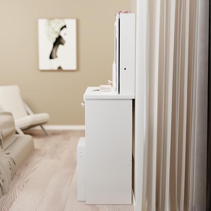 - Modern Style with Functional Drawers: Designed as a modern vanity with drawers, it brings clean lines and smooth-glide compartments to your room, helping you keep makeup, skincare, and accessories organized.