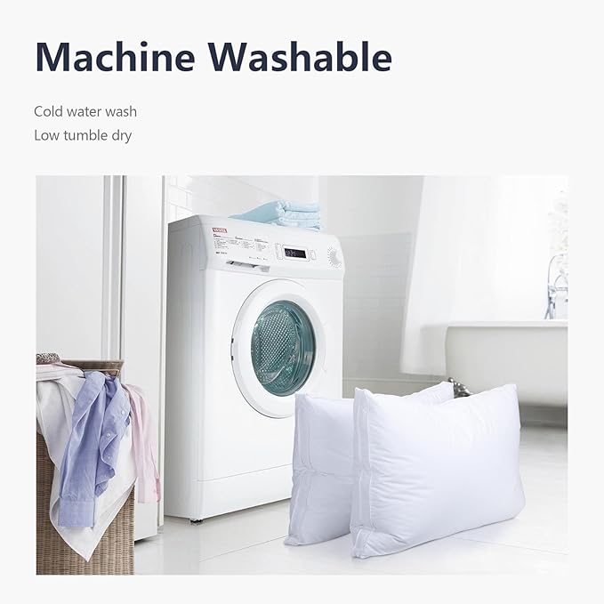 - Hotel-Quality Experience & Easy Care: Enjoy the lavish feel of a five-star hotel goose down pillow in your own home. Maintaining its freshness is effortless – simply machine wash on gentle cycle and tumble dry low. Durable construction ensures long-lasting luxury.