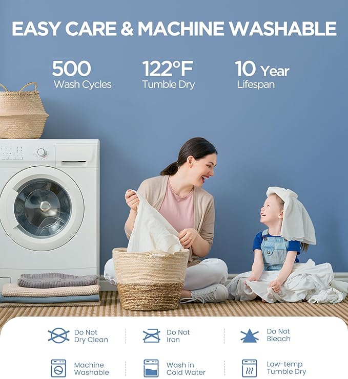 - EASY USE & MACHINE WASHABLE - The 360° elastic band makes the mattress pad easy to put on. With deep elastic pockets, our cal king size mattress protector fits mattresses 8" to 16" thick. No matter how you move, the mattress cover stays put all night. The mattress protector is hassle-free to clean—just toss it in the washing machine with cold water and tumble dry on low heat (below 122°F). Note: do not iron, bleach, or dry clean. Effortless upkeep, fresh again!