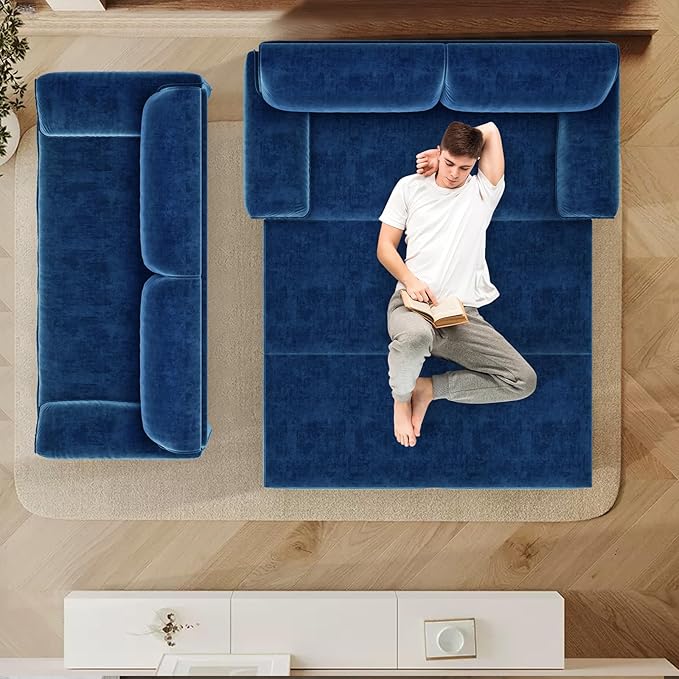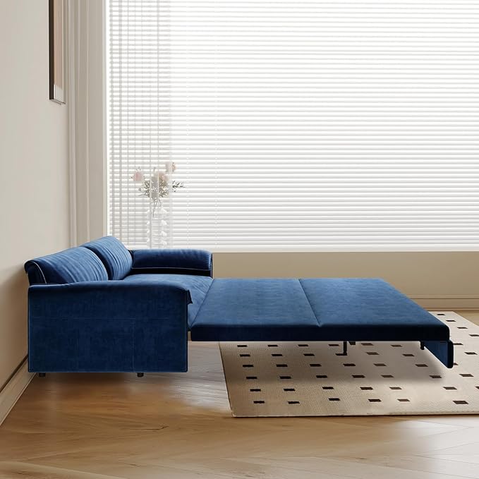 - 3-in-1 Convertible Couch Bed: Switch from sofa to chaise lounge to queen-size bed in seconds. The pull-out mechanism glides smoothly on noise-free rollers, offering a hassle-free setup for overnight guests. Queen bed dimensions: 80.7"L x 66"W.