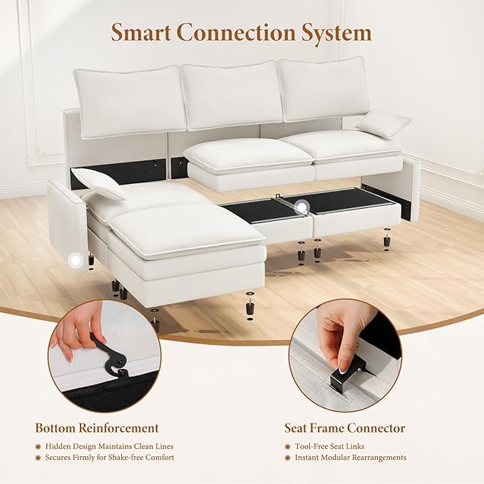 - Fully Modular Design for Customizable Layouts: This modular sofa offers unmatched flexibility, with an overall size of 135"W x 101"D x 35.5"H and seating for 5+ people. You can easily customize the seating arrangement to fit your space and lifestyle. Its rearrangeable components make refreshing the look of your living room effortless, making this cloud sofa both a chic and practical addition to your home. Enjoy the freedom to design your ideal lounging area with this innovative sectional sofa
