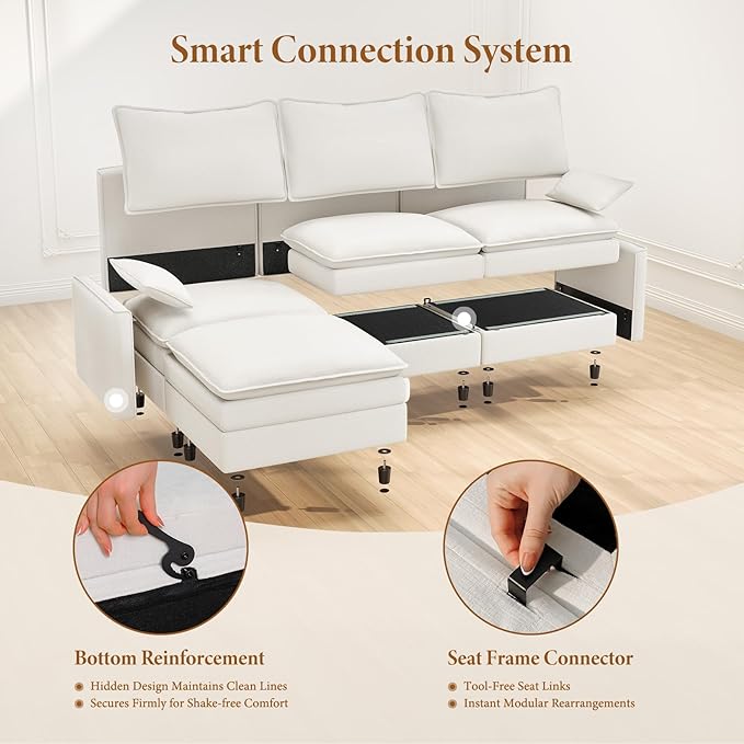 - Two Sets of Sofa Legs & Effortless Assembly: This cloud sectional couch comes with two leg height options—2.76" and 4.72"—so you can customize the height to suit your preference. Choose the lower height for a relaxed look, or the higher height for easier access, which also allows robot vacuums to clean underneath with ease. Assembly is simple: with clear instructions and all the necessary tools included, you can have it setup in just 30 minutes with no extra equipment required