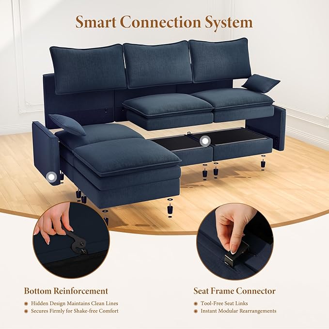 - Durable Construction & Customer-Centric Support: The sofa frame (armrests, backrests, and seat frames) is made from FSC-certified wood, with self-developed reinforced components, our modular sectional sofa offers better stability than others, making it ideal for all body types. This L-shaped couch will be delivered in 3 boxes, please check all parts before assembly. If you're not satisfied with the sofa you received, please feel free to contact our customer service team