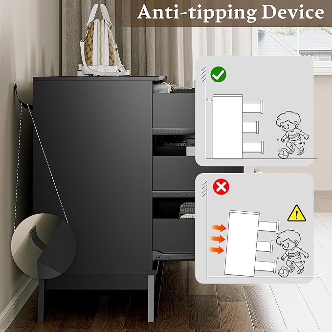 - 【PERFORMANCE UPGRATE】Sturdy wood dresser legs structure ensures stability and support for daily use, that always keep it stable on uneven floors. And the anti-tipping device can protect your family from tipping related injuries. Besides, bedroom dresser is equipped with sliding rail smooth-gliding and independent, you can push in and pull out drawers easily and quietly.
