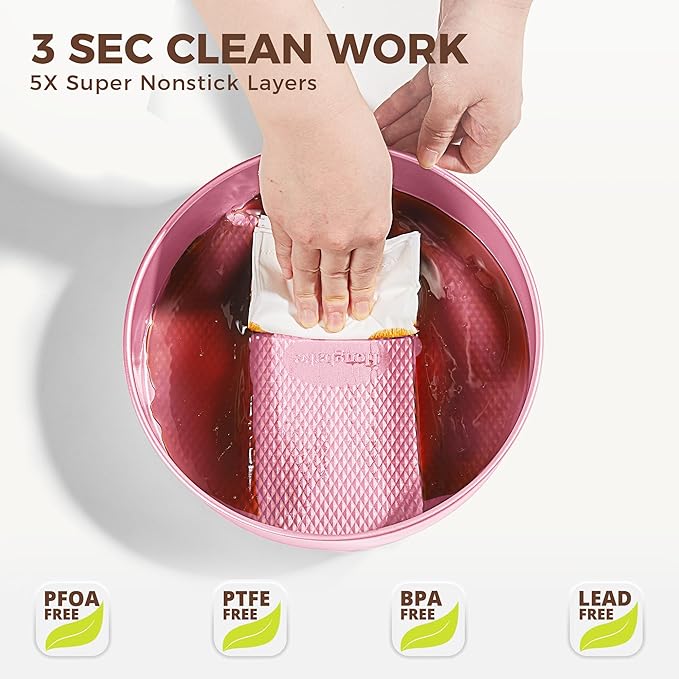 HONGBAKE 9-Piece Baking Pans Set Nonstick, Stackable Non Toxic Bakeware Sets with Diamond Texture, Oven Pan Set for Cooking, Includes Cookie Sheet with Rack, Cake Pan, Roasting Pan, Muffin Tin, Pink