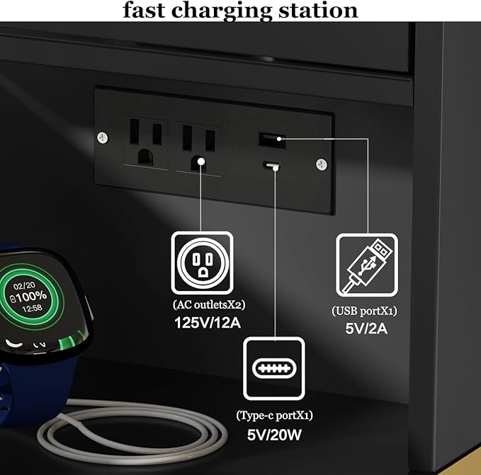 - 【Vanity Table with Charging Station】-This makeup vanity features a charging station, includes 2 standard plug sockets and 2 USB ports, which can be more convenient to connect your hair dryer, curling iron, and it can also charge your phone, tablet or other mobile devices, The unique design is more convenient for you to use.
