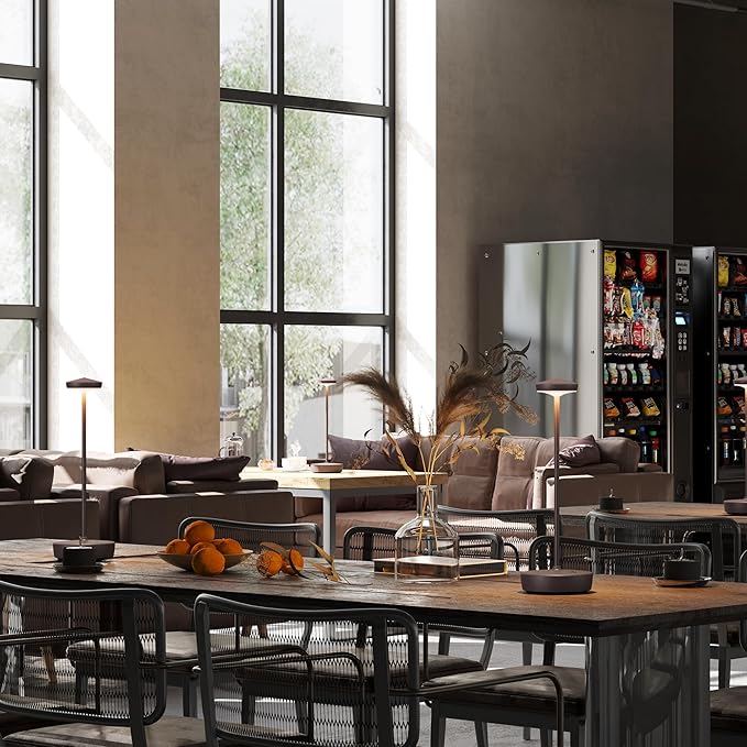 - Stylish & Versatile Design: Sleek modern design enhances any space; durable aluminum alloy body; weighted base with non-slip pads for stability; rechargeable cordless operation for indoor/outdoor flexibility; suits restaurants, cafes, patios, and home decor