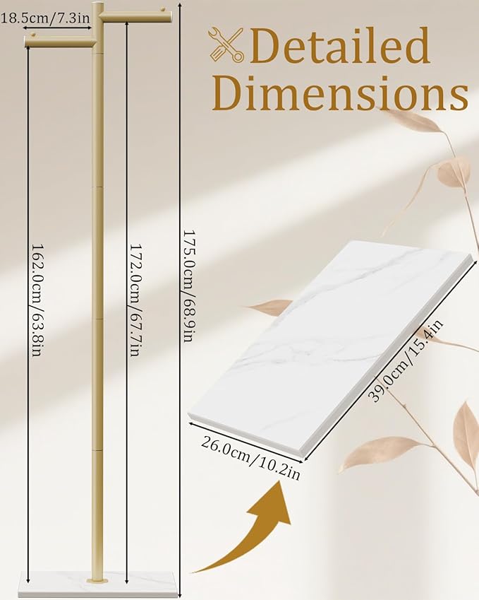 - High Quality Materials: The standing clothes hanger is made of high-quality tubular metal, providing strong support while being scratch resistant, smooth to the touch. Paired with a heavy rock slab base, it becomes more sturdy and durable