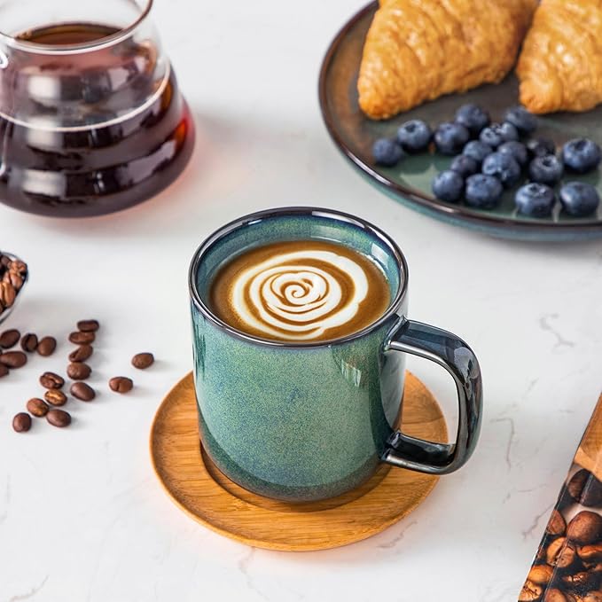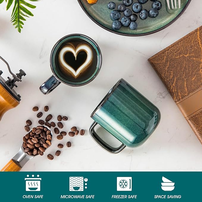- 【Unique Kiln-Transformed Glaze】: Each coffee cup features one-of-a-kind natural color variations and patterns, created by unpredictable chemical reactions at high temperatures. The dense, vitrified glaze layer enhances scratch and corrosion resistance, ensuring long-lasting vibrancy without fading or dullness.