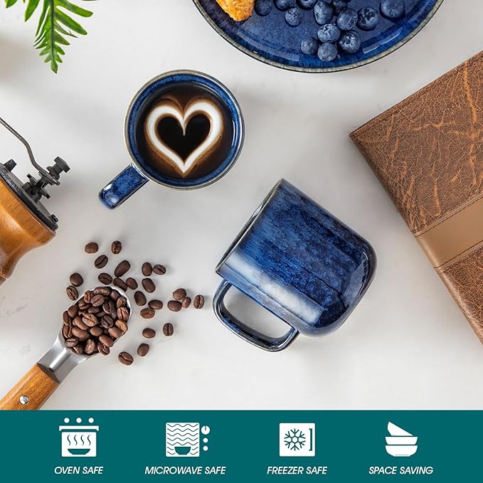 - 【Dishwasher-Safe & Durable】: Fired at 2372°F+ for a fully fused, non-porous glaze (vs. standard 1832°F), this coffee mugs set of 6 resists high-pressure water and heat. The low-absorption ceramic body (<0.3%) prevents detergent residue buildup, ensuring easy cleaning and long-lasting use.