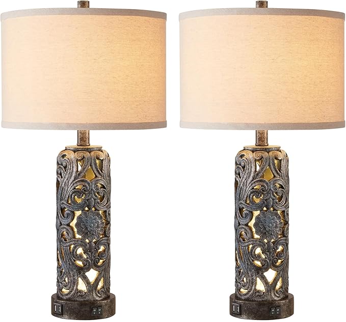 - Dual USB Charging Ports: This vintage table lamp is not only a lamp, but also your smart charging station. Equipped with two USB charging ports, you can charge your phone, tablet or other electronic devices at the same time. Say goodbye to messy cords and keep your desktop more tidy and organized. One light is multi-purpose to meet your multiple needs, making your life more convenient and efficient!
