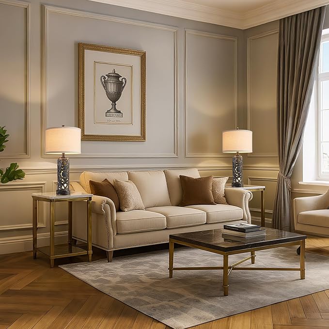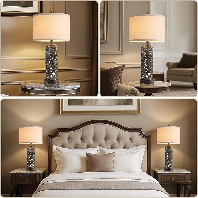 - Vintage Aesthetic Design: This table lamps design is very delicate, the gray-green body of the lamp exudes an understated and elegant atmosphere, and the beautifully carved floral pattern adds a sense of artistry and hierarchy. The soft night light creates a cozy and serene atmosphere through these delicate openwork designs. This table lamp is perfect for modern minimalist, classic or farmhouse vintage decor.
