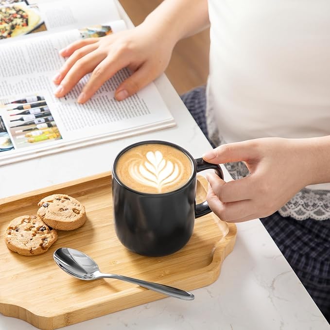 vancasso Stoneware Coffee Mugs Set, 12 oz Ceramic Coffee Cups for Latte Hot Tea Cappuccino Cocoa Milk Cups Set of 6, Dishwasher & Microwave Safe, Matte Black
