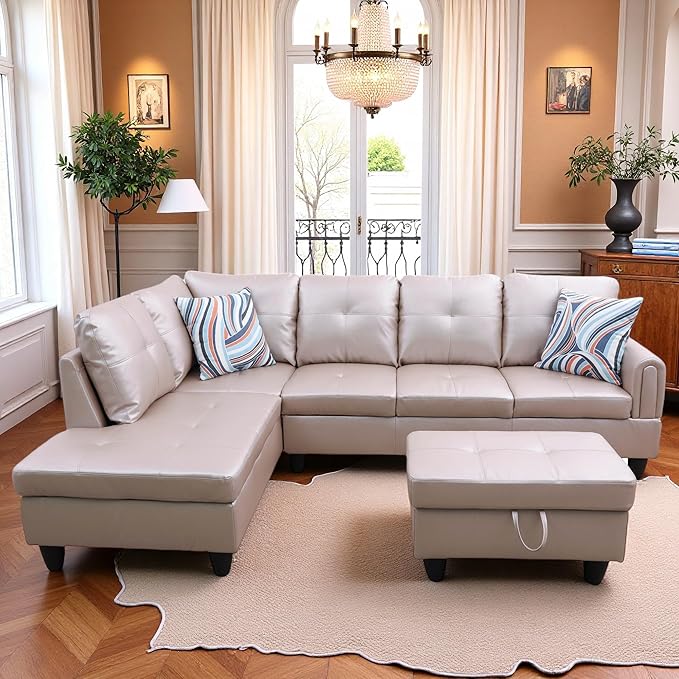 - Improved comfort and versatility: Designed to meet the needs of daily use, this L-shaped sofa features a sturdy wooden frame, exquisite craftsmanship and stable structure. The sofa surface is soft and breathable, not easy to fade, and skin-friendly and comfortable