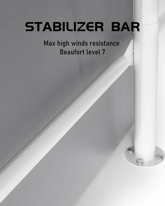 - [Ultra Stability] Featured bottom reinforced bars and top steel cables for ultra stability. Max wind resistance: Beaufort level 7, allowing you to store items with peace of mind and remain stable under near gale
