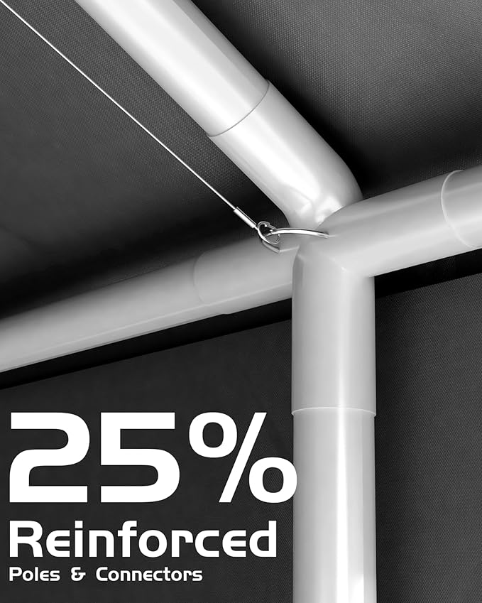 - [Built to Last] Robust construction with 10x1.0mm thick reinforced leg poles and 1.2mm thick connectors; 200 Gsm PE tarps ensure strength with a max 3-inch snow load