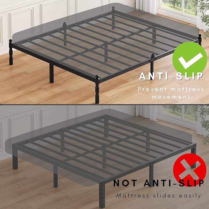 - Big Under-Bed Storage: With height of 14 inches, this bed frame offers sufficient under-bed storage space, perfect for organizing bins, luggage, or seasonal items. It helps maximize your bedroom space while keeping your room clean and clutter-free.