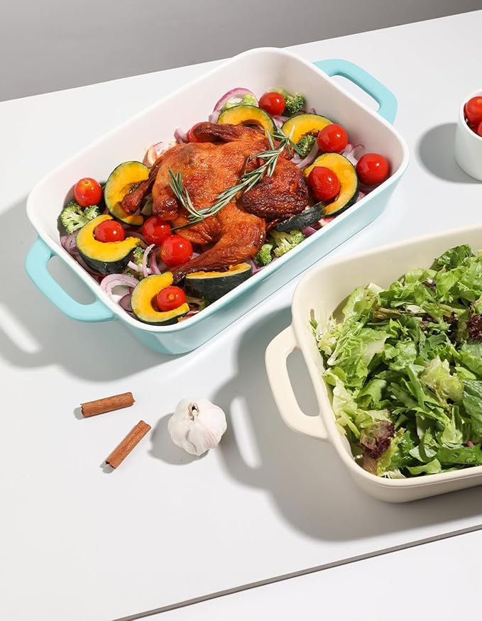 - A Perfect Bakeware Gift Choice: Looking for a thoughtful gift for a housewarming, wedding, birthdays, gatherings or any special occasion? Our ceramic baking dishes are an excellent choice. Their elegant design, smooth glaze surface,and bright color, combined with their functionality, makes them a practical and stylish addition to any kitchen. Surprise your guests with this casserole dish set and let them enjoy the joys of baking and cooking in style.