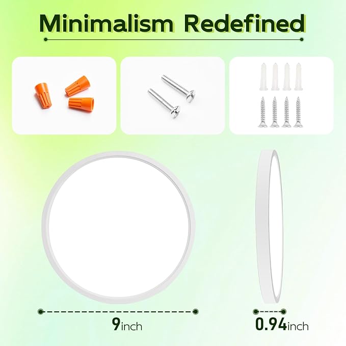 - HIGH PERFORMANCE -- The edge-lit LEDs in the round flat panel light are integrated, so no bulbs needed. 18W, Our flush mount ceiling light is perfect for bedroom, kitchen, closet, bathroom, living room, garage, basement, ect.