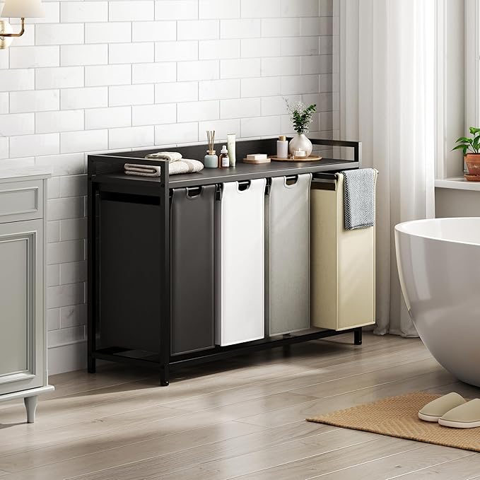 - Large capacity design - Overall dimensions: 43.7 L*15.74 W*33.66 H inches, individual bag dimensions: 9.33 L*15.35 W*25.59 H inches (15.87 gal/60L). This laundry basket features a four-color large capacity design, making it easy to distinguish and organize your clothes. Whether you want to separate clothes by different colors or separate underwear, jackets, and pants, it can meet your needs.