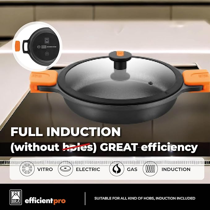- SUITABLE FOR ALL COOKTOPS : Efficient Pro kitchenware full induction base ensures optimal heat distribution for lower energy consumption and more efficient cooking. It is compatible with all heat sources (Induction / Vitro / Electric / Gas).