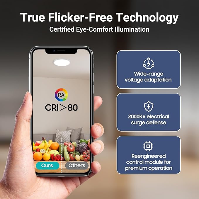 - 【Safe, Durable & Eye-Care Certified】Engineered with fire-resistant materials and short-circuit protection for worry-free use. Advanced heat dissipation ensures stable performance, while flicker-free, high-CRI light reduces eye strain—ideal for kids’ rooms or late-night kitchen runs.