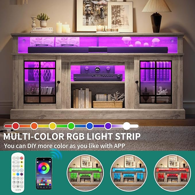 - Enhanced LED Entertainment Center: Immerse yourself in our LED TV stand, boasting 16 vibrant colors and 4 dynamic flashing modes. Easily controlled via remote or app, tailor the lighting to suit any mood or occasion