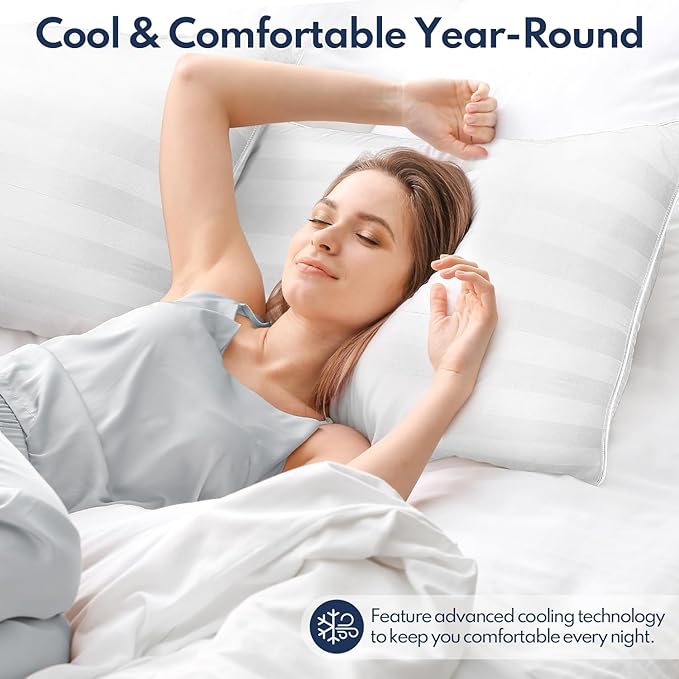 - Innovative Design for Optimal Sleep - Infused with imported down alternative hollow fiberfill, our bed pillows promote natural airflow and provide a unique slow-rebound sensation. Designed to adapt to your sleep posture, they relief neck pain and shoulder aches, catering to all sleepers.
