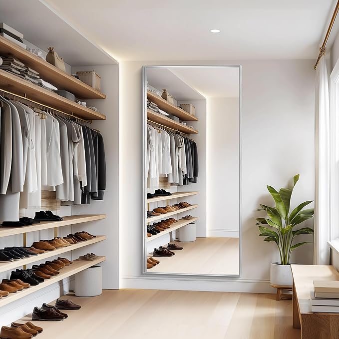 - Sleek & Sturdy Aluminum Alloy Frame This elegant silver bathroom mirror features a lightweight yet durable aluminum alloy frame, designed to resist deformation, chipping, and corrosion. The slim metallic profile adds a modern touch, elevating your space with a luxurious finish. Perfect as a wall-mounted or hanging mirror, it combines strength, style, and longevity