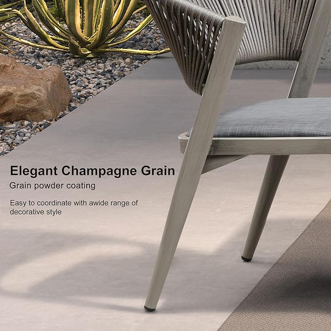 - Aluminum Frame: Finished with grey powder coating, this patio table and chairs set not only provides a stylish look but also features rust resistance and is solid enough to withstand all weather for years of use.