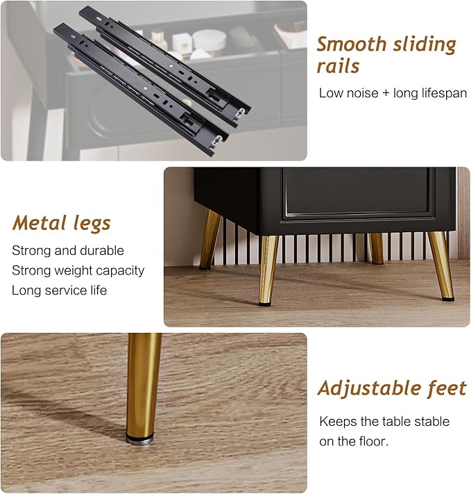 - 【Large Capacity Space 】The vanity is equipped with 3 oversize drawers and 2-layer side storage shelves for cosmetics. It provides ample storage space to store your jewelry, hair accessories and cosmetics, so that you can have a neat and tidy desktop.