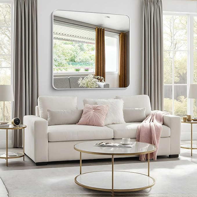- ROUNDED CORNER DESIGN:The 48x48 inches mirror features an elegant rounded corner design and measures 48" x 48" Its unique shape adds a touch of sophistication and upscale beauty to your home.