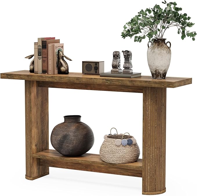 - Modern Design: The LITTLE TREE 55-Inch Console Table sports a contemporary design that can seamlessly blend with a variety of home decor styles. Its elegant frame and rich brown finish create an eye-catching focal point in any living space