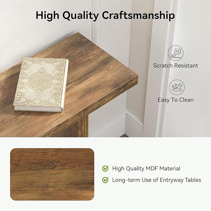 - Space-Saving: With its narrow design, this table is an ideal space-saving solution for small hallways or entryways. Despite its compact size, the table provides ample surface area for displaying decorative items or storing essentials