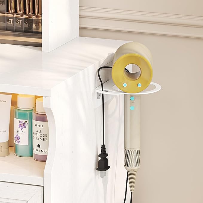Large Black Vanity Desk with Sliding Mirror & Lights, Big 58.6" Makeup Vanity Table & Nightstand Combo with Power Outlet and 6 Drawers 15 Shelves with Light Strips for Bedroom