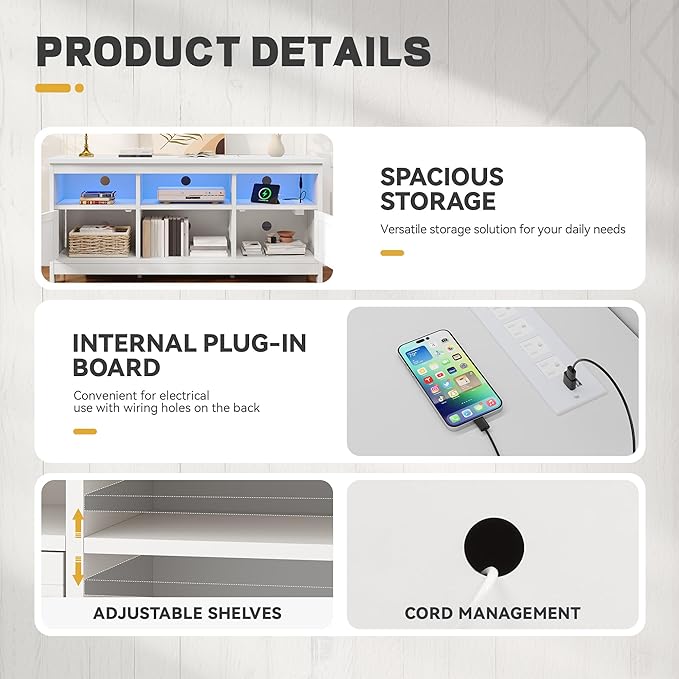- LIGHTED ENTERTAINMENT CENTER: This stylish living room furniture enhances your TV viewing experience and entertainment ambiance; integrated LED light strips offer a variety of colors to create a dynamic atmosphere that matches your mood