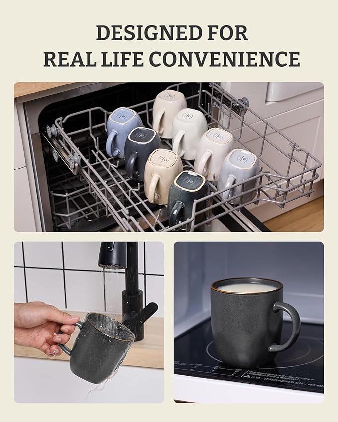 - 【Dishwasher and Microwave Safe】 Famiware Stoneware coffee cups for the kitchen are made of premium stoneware. Each plate and bowl is dishwasher and microwave safe