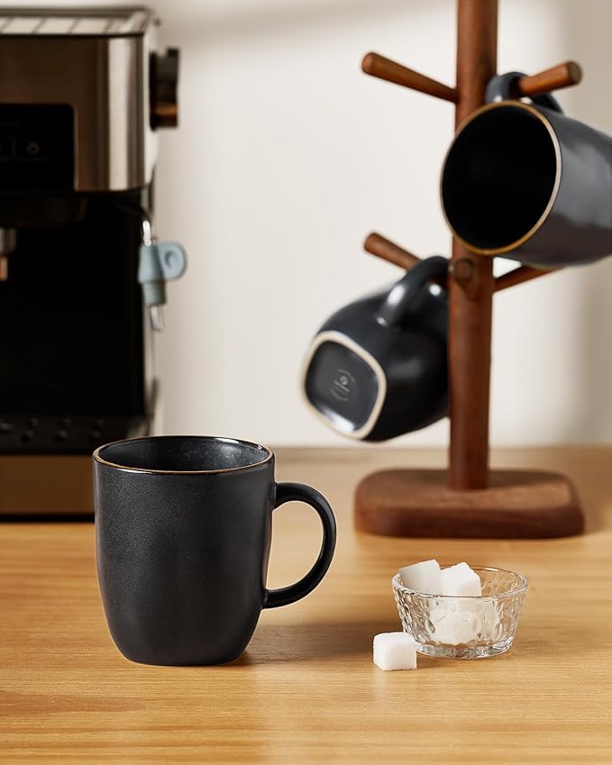 famiware Coffee Mugs Set of 6, Ocean Square 13oz Coffee Cup Set with Handle for Cocoa, Milk, Hot Chocolate, Tea, Water, Stoneware Cups for Kitchen, Microwave and Dishwasher Safe, Matte Black