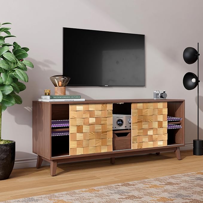 - Versatile Media Console Cabinet: From living rooms to bedrooms, this walnut TV stand adapts as a retro console table or modern media center. Natural woodgrain textures add warmth to minimalist spaces.