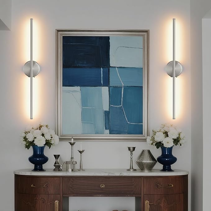 Battery Operated Wall Sconce Set of 2, Brushed Nickel 27.5" LED USB Rechargeable dimmable Wall Sconce with Remote Control, Rotate 350° for Living Room, Bedroom, Hallway and scones Lighting