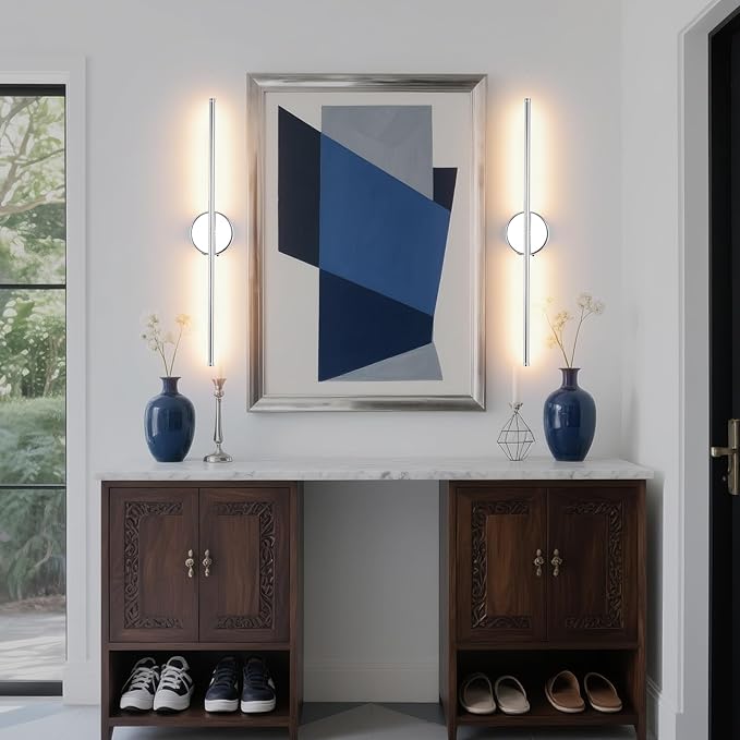 Battery Operated Wall Sconce Set of 2, Chrome 27.5" LED USB Rechargeable dimmable Wall Sconce with Remote Control, Rotate 350° for Living Room, Bedroom, Hallway and scones Lighting