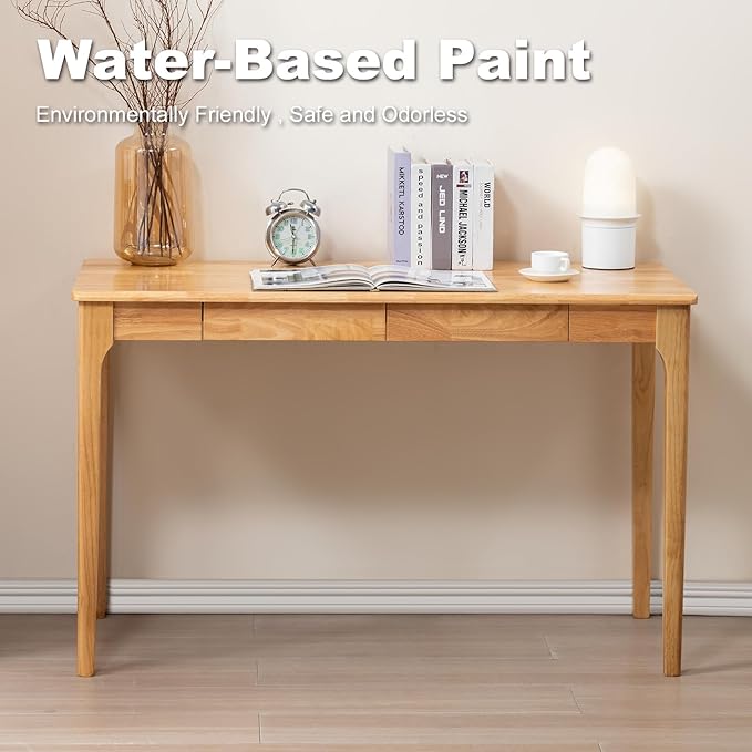 Solid Wood Desk, Gaming Study Home Office Desks for Work, Student PC Desk for Bedroom, Small Computer Desk for Small Spaces, Easy to Assemble (Wood Color, 47inch)