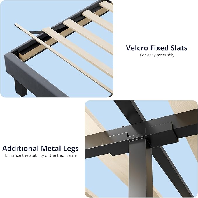 - Effortless & Fast Assembly: Two people can assemble this platform bed frame in as little as 30 minutes. Everything you need is included – all necessary hardware plus a user-friendly, step-by-step visual guide available in paper, PDF, and video formats. The straightforward installation procedure means you'll be enjoying your new bed in no time